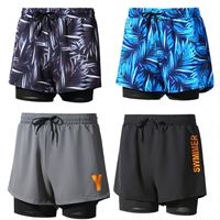 Conjunto de bañadores de dos piezas falsos antivergüenza de seda helada de secado rápido para hombre, pantalones de playa profesionales con frente plano para adultos