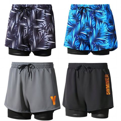 Hombres adultos de secado rápido de talla grande Anti-vergüenza 2025 Nuevo de doble capa de tres cuartos de longitud