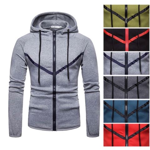 Contrast Winter Casual Long Sleeve Sweater Slim Zip up Hoodies Jacket for Men