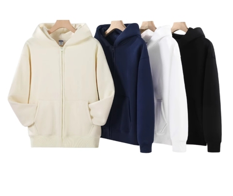 2024 New Fashion Trend High Quality Oversized Solid Color Blank Casual Street Long Sleeve Hip Hop Men's Zipper Hoodie