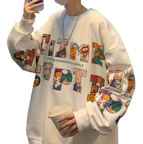 2024 Áo hoodie Thanh Niên Nam Mỹ Châu Âu dệt bằng cotton nguyên chất phong cách cổ điển in đá mặt đất giải trí phong cách cổ điển mùa thu